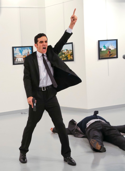 The assassin and his victim, Russian ambassador, Andrey Karlov.